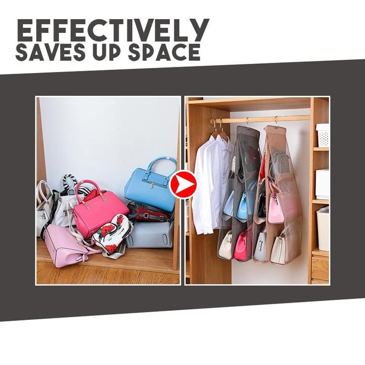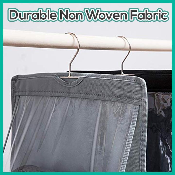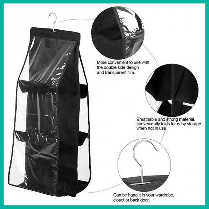 Πρόκειται για μια κρεμαστή λύση στο πρόβλημά σας! Περιλαμβάνει έξι (6) ευρύχωρες θήκες, οι οποίες προστατεύουν τις τσάντες, τις ζώνες, τα φουλάρια, τα παπούτσια, κλπ. από την σκόνη και παράλληλα, εξασφαλίζουν την οπτική επαφή, για να μη ψάχνετε με τις ώρες το αγαπημένο σας αξεσουάρ.