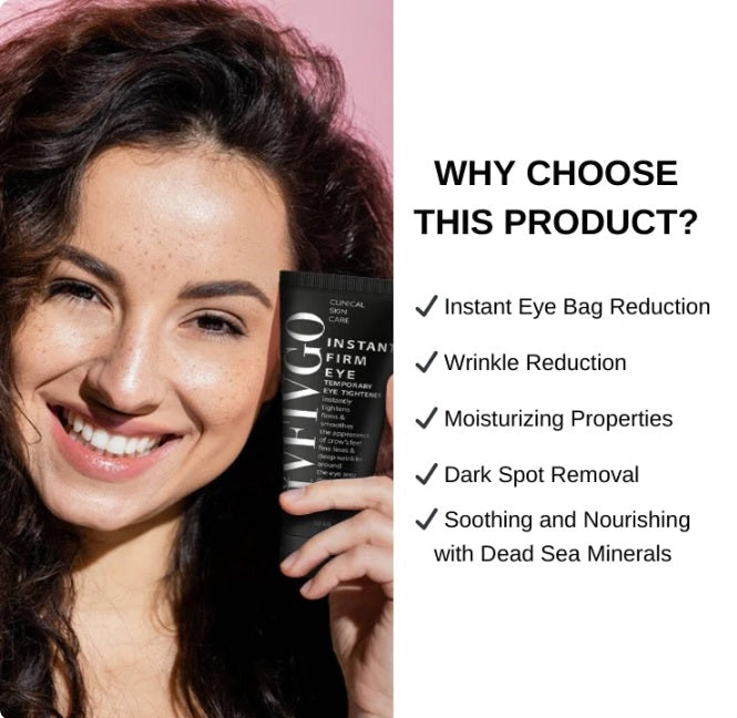 Επιλέξτε το Fivfivgo™  Clinical SkinCare Άμεση σύσφιξη ματιών για μια γρήγορη και αποτελεσματική λύση για τα κουρασμένα μάτια. Με την ικανότητά του να μειώνει άμεσα τις σακούλες των ματιών, να μειώνει τις ρυτίδες, να ενυδατώνει το δέρμα, να αφαιρεί τις σκούρες κηλίδες και να παρέχει καταπραϋντική θρέψη μέσω των ορυκτών της Νεκράς Θάλασσας, αυτό το προϊόν προσφέρει μια ολοκληρωμένη και γρήγορη προσέγγιση για την επίτευξη μιας ανανεωμένης και νεανικής εμφάνισης. Η μη επεμβατική φόρμουλα και τα μακροχρόνια αποτελέσματα το καθιστούν μια βολική επιλογή για όσους αναζητούν άμεσες και ορατές βελτιώσεις γύρω από την ευαίσθητη περιοχή των ματιών.