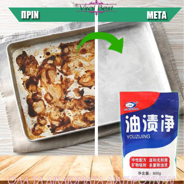 Το καθαριστικό για καμένα λίπη και επίμονους λεκέδες ήρθε για να μετατρέψει τα βρώμικα ταψιά και τηγάνια, τον φούρνο και τις εστίες της κουζίνας σε καινούργια! Καθαρίζει και απολυμαίνει τα μαγειρικά σκεύη εύκολα, γρήγορα και αποτελεσματικά!