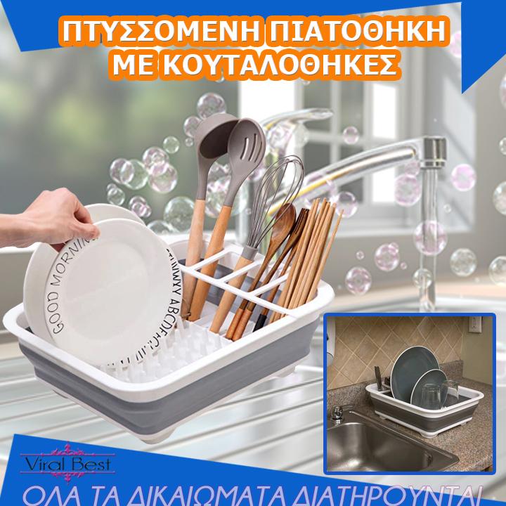 Στον πάγκο σας χωράνε ελάχιστα χρήσιμα αντικείμενα; Τότε, πρέπει να αποκτήσετε άμεσα την πτυσσόμενη πιατοθήκη με κουταλοθήκες! Χάρη στον αναδιπλούμενο σχεδιασμό της, μαζεύεται εύκολα και γρήγορα, όταν δε χρησιμοποιείται, καταλαμβάνοντας ελάχιστο αποθηκευτικό χώρο