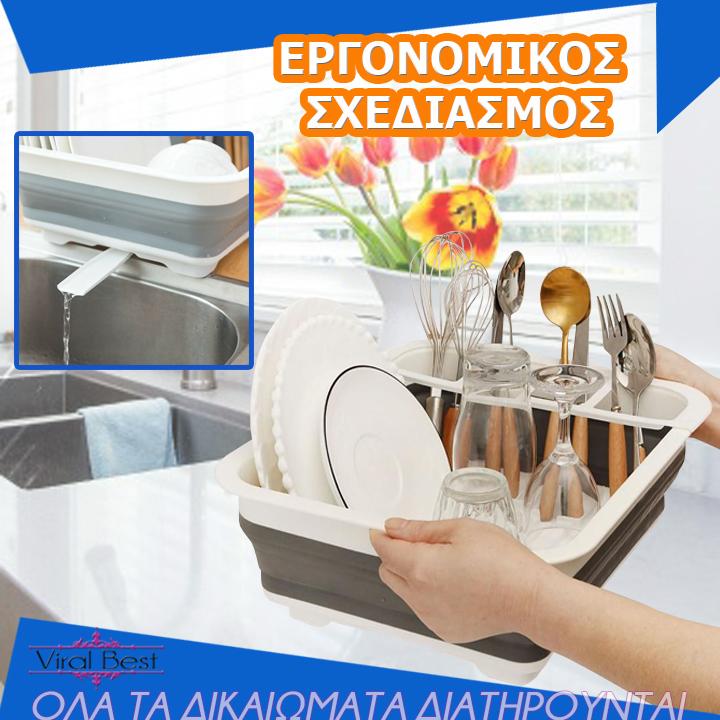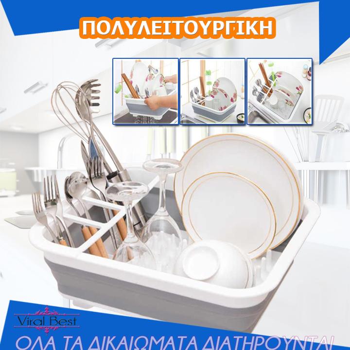 • Εύχρηστη: Είναι πανεύκολη στη χρήση! Αρκεί να υψώσετε τα τοιχώματα και να αραδιάσετε τα σκεύη στην πιατοθήκη. Τοποθετείται ακόμα και μέσα στον νεροχύτη, για να στραγγίζουν εύκολα και γρήγορα! Χάρη στον ελαφρύ και φορητό σχεδιασμό της, μπορεί να χρησιμοποιηθεί εξίσου αποτελεσματικά σε εσωτερικούς και εξωτερικούς χώρους (π.χ. αυλή, κήπος, μπάρμπεκιου, τροχόσπιτο, κατασκήνωση, κλπ).