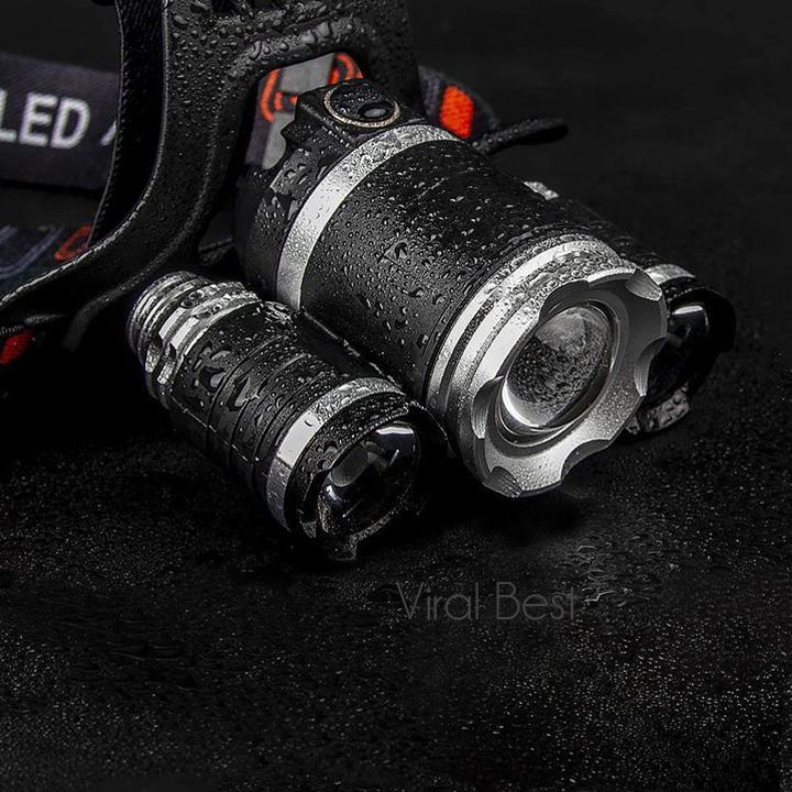 Ο επαναφορτιζόμενος φακός κεφαλής με τρία (3) LED δεν πρέπει να λείπει από την κατοχή σας! Με πανίσχυρο φωτισμό-έως δύο χιλιάδες διακόσια (2200) lumen- θα ευχαριστήσει ακόμα και τους πιο απαιτητικούς! Φωτίζει έως και εκατό (100) μέτρα μακριά από το σημείο που βρίσκεστε, ενώ γίνεται ορατός ακόμα και σε απόσταση οκτακοσίων (800) μέτρων