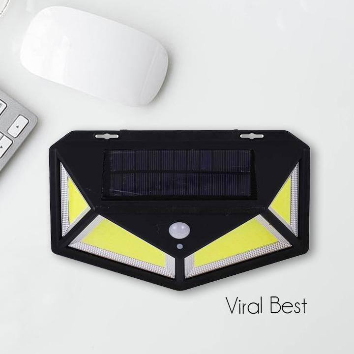 Σας παρουσιάζουμε την ηλιακή επιτοίχια λάμπα με τέσσερα (4) τμήματα και αισθητήρα κίνησης! Είναι εξοπλισμένη με το κορυφαίο ηλιακό πάνελ μονοκρυσταλλικού πυριτίου, το οποίο μετατρέπει έως και δεκαεννέα (19) τοις εκατό του ηλιακού φωτός σε ηλεκτρική ενέργεια. Σας προσφέρει δυνατό φωτισμό, μετατρέποντας τους σκοτεινούς χώρους σε φωτεινούς και ασφαλείς.