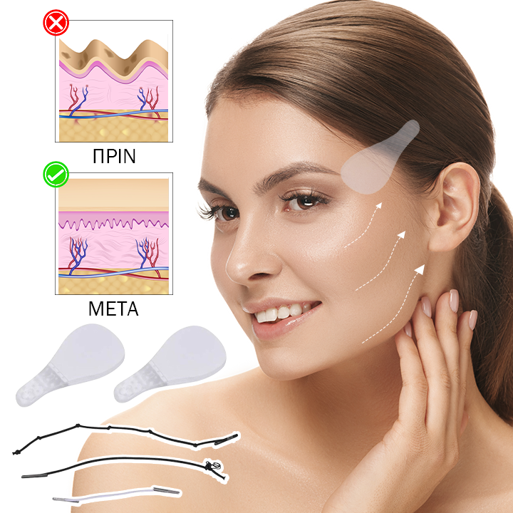 40 Αυτοκόλλητα Επιθέματα & 3 Λάστιχα Για Φυσικό Λίφτινγκ Προσώπου ⭐