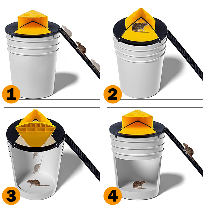 • Εύχρηστο: Το έξυπνο καπάκι κάνει όλη τη δύσκολη δουλειά! Εσείς πρέπει μόνο να το κουμπώσετε σε έναν κοινό, στρογγυλό κουβά (19L) και να τοποθετήσετε στο εσωτερικό του φάρμακο, νερό ή οτιδήποτε άλλο πιστεύετε ότι θα εξουδετερώσει τα ανεπιθύμητα τρωκτικά. Έπειτα, αναλαμβάνει δράση! Μάλιστα, η συσκευασία περιλαμβάνει και «σκαλάκι» για τα ποντίκια, προκειμένου να διευκολυνθεί και να επιταχυνθεί η διαδικασία αιχμαλώτισης!