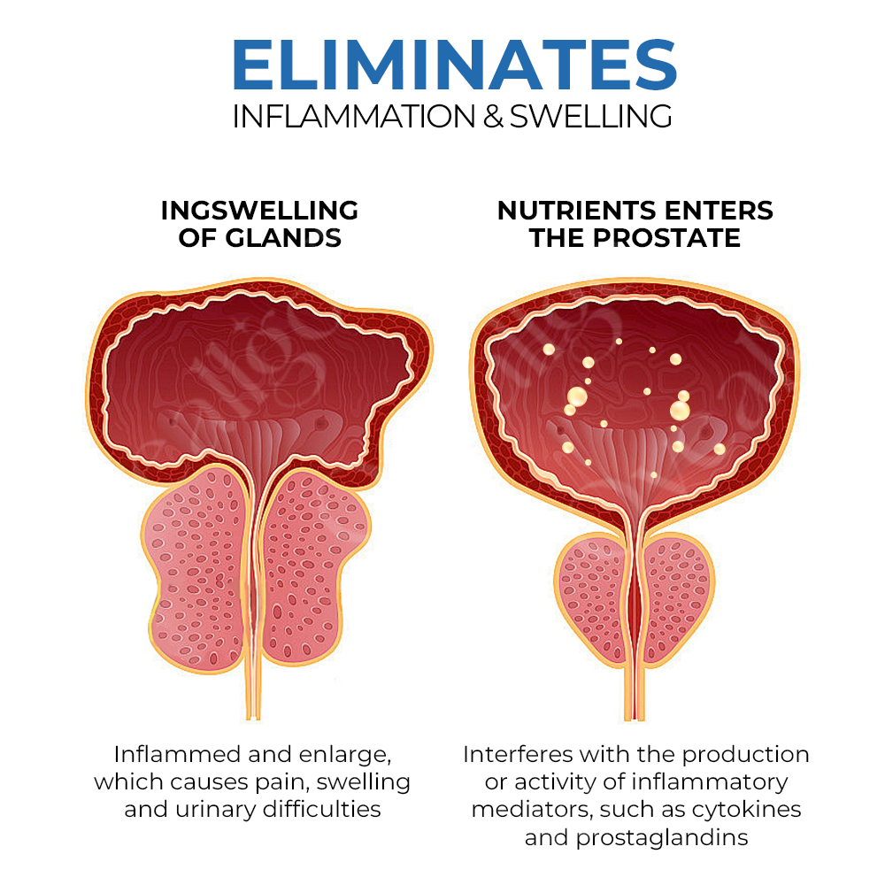✅ Μειωμένη φλεγμονή: Βοηθά στη μείωση της φλεγμονής μέσα και γύρω από τον προστάτη, ανακουφίζοντας τα συμπτώματα που συνδέονται με την προστατίτιδα ή την καλοήθη υπερπλασία του προστάτη (BPH).