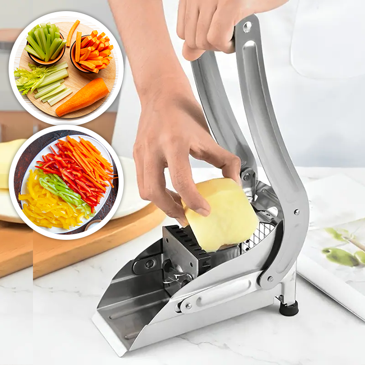 Για αυτό, ψάξαμε, βρήκαμε και σας παρουσιάζουμε τον έξυπνο πατατοκόφτη από ανοξείδωτο ατσάλι! Κόβει τις πατάτες, τα φρούτα, τα λαχανικά και οποιοδήποτε άλλο υλικό επιθυμείτε, εύκολα, γρήγορα και ξεκούραστα!