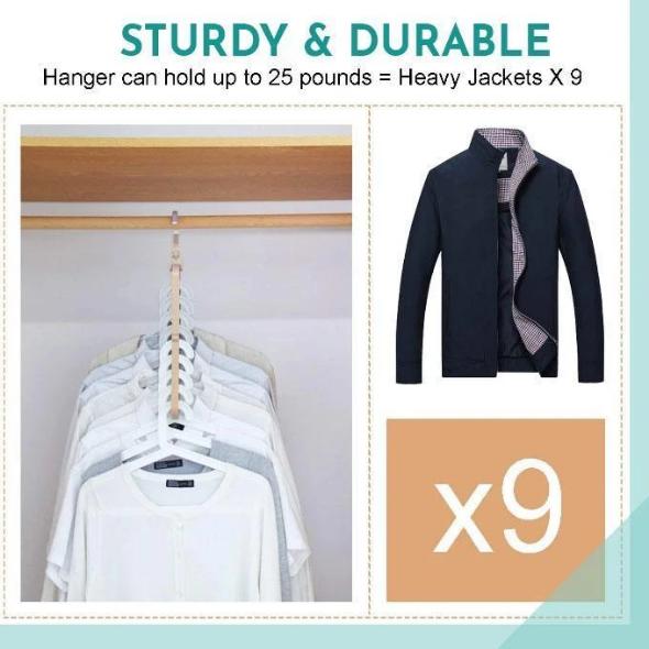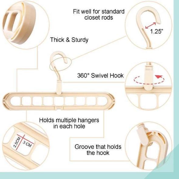 • Εξοικονόμηση χώρου: Ποτέ ξανά δεν είχατε τόσο χώρο στις ντουλάπες σας. Ουσιαστικά, είναι εννέα (9) κρεμάστρες σε μία (1) με αποτέλεσμα, την άμεση οργάνωση και την αύξηση του αποθηκευτικού σας χώρου έως και ογδόντα (80) τοις εκατό.