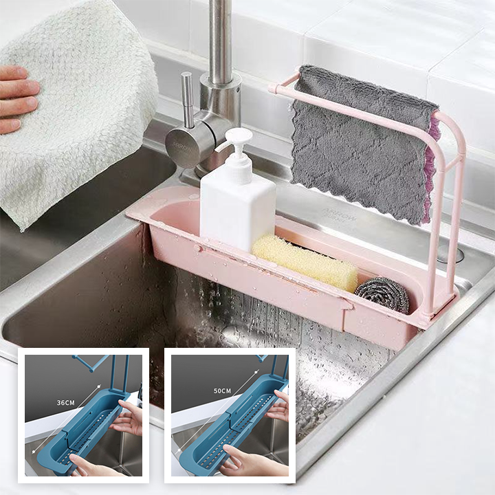 Εάν η θήκη που έχετε για το σφουγγάρι πιάτων, σας παιδεύει, το τηλεσκοπικό ράφι νεροχύτη είναι αυτό που χρειάζεστε! Διατηρεί τον νεροχύτη σας καθαρό και οργανωμένο, αφού κρατά τα αντικείμενα στεγνά, εμποδίζοντας τη συσσώρευση νερού, χάρη στις οπές αποστράγγισης