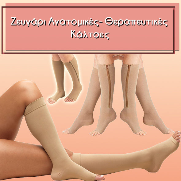 Δώστε τέλος στην ταλαιπωρία, αποκτώντας αυτές τις ανατομικές-θεραπευτικές κάλτσες. Βελτιώνουν την κυκλοφορία του αίματος και σας απαλλάσσουν από αισθήματα πόνου και δυσφορίας. Αντιμετωπίζουν τα πρηξίματα και άλλες παθήσεις των ποδιών.