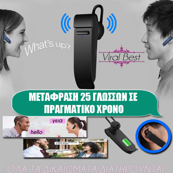 Το συγκεκριμένο ακουστικό δεν πρέπει να λείπει από την κατοχή σας! Η μετάφραση είκοσι πέντε (25) γλωσσών σε πραγματικό χρόνο, σας επιτρέπει να παρακολουθείτε ή/ και να συμμετέχετε σε μία συζήτηση, χωρίς η γλώσσα να περιορίζει την επικοινωνία σας!